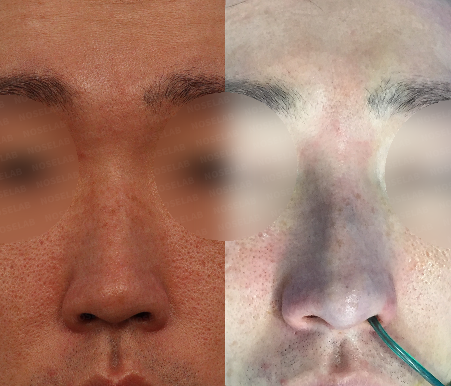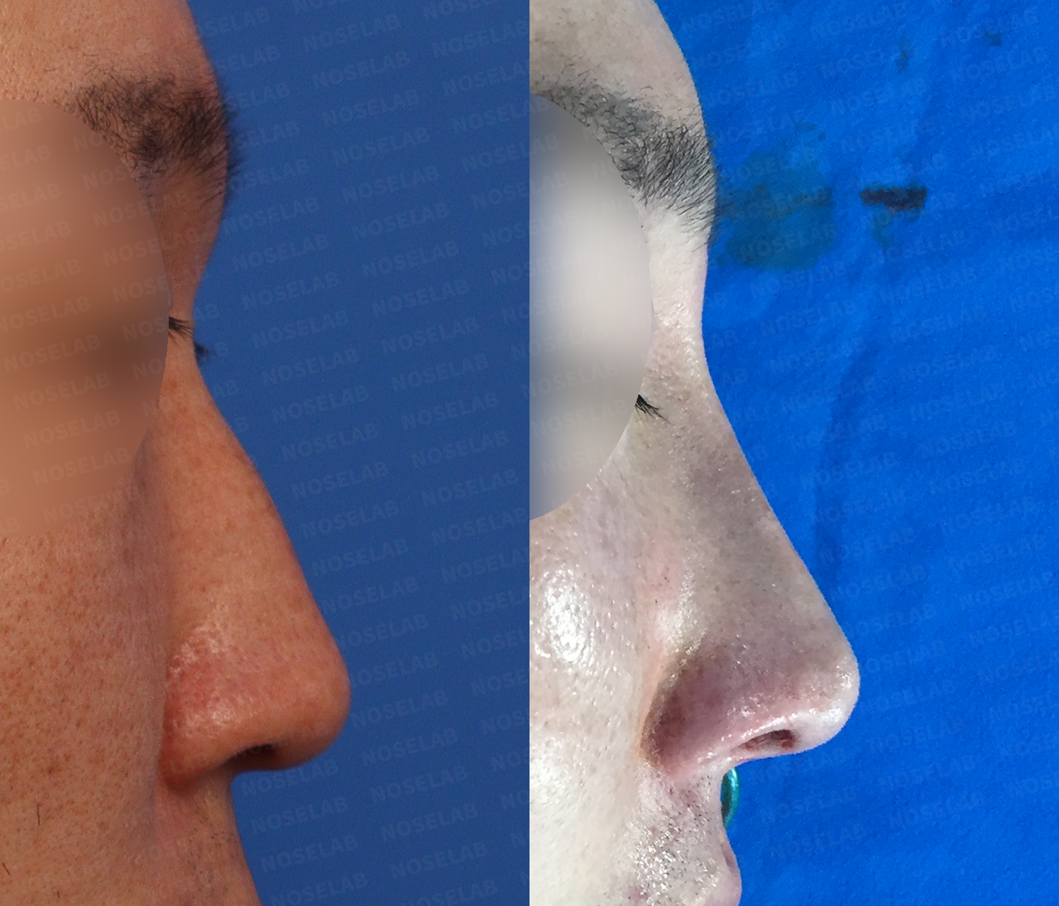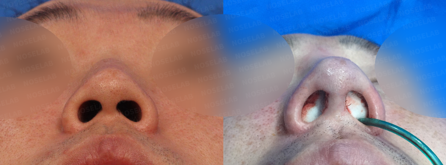 The shape of the nose is also important, but it was more important to adjust the proportion of the nose that occupied the entire face. Overall, the long and spread feeling was naturally corrected, and the masculine feeling was very emphasized as the hump was removed and the nose line was held in a straight line.