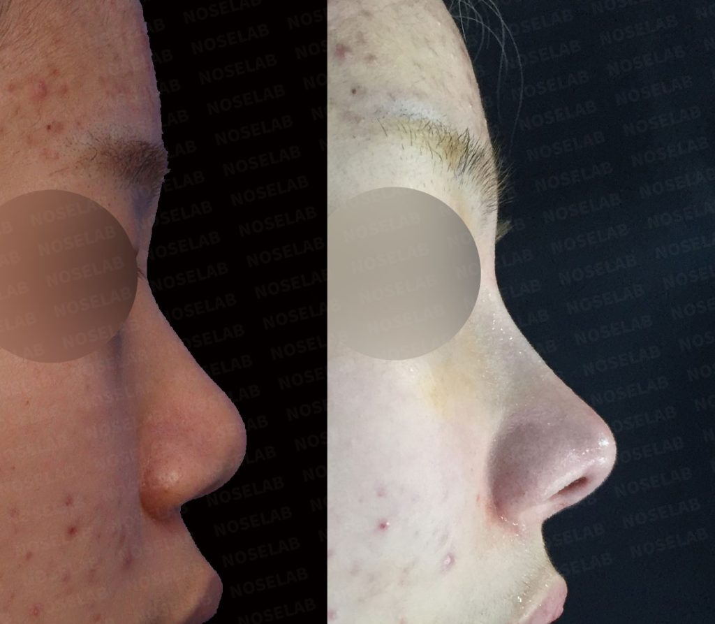 It is a surgery to correct the nose that appears to have a lot of wide nose and retracted columella. Rather than reducing the alar, raising the nose tip, the surgery to lower the columella was done, resulting in good results. The surgery to cut the alar should be very careful because it can lead to unresolved scars, smaller nostrils, and irreparable nostril asymmetry. Therefore, there are many cases where the retracted columella correction surgery and the nasal floor reduction surgery can produce good enough results.