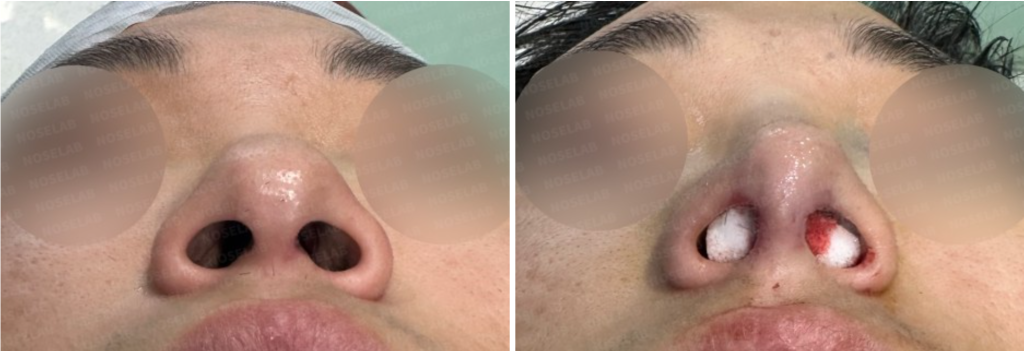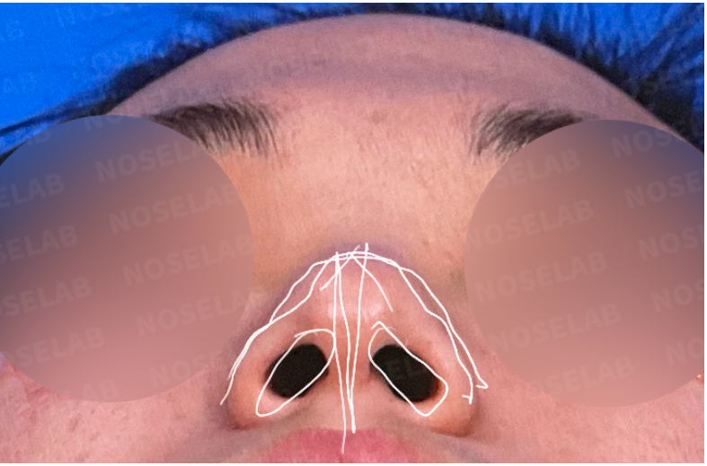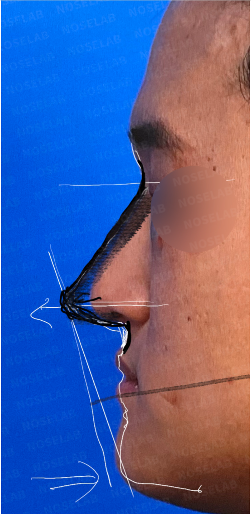 - The blunt and wide parts of the nose tip ➜ To fix the bulbous nose, I planned to use the self-rib cartilage to make the nose tip stand up straight and give it a three-dimensional effect.